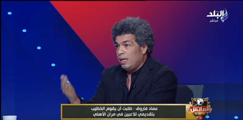 وأكمل عماد فاروق، أنا لا أحب الظهور بشكل مستمر لأن لدي العمل الخاص بي وأنا أعمل محاضر في الاتحاد الدولي للكرة الطائرة وعملي خاص بعلم النفس ولا أحب التصارع نهائيا، وكان هناك اتفاق مع محمد رمضان على عقد اجتماع بعد عودة بعثة الأهلي من الإمارات للاتفاق على تفاصيل العمل مع الأهلي.