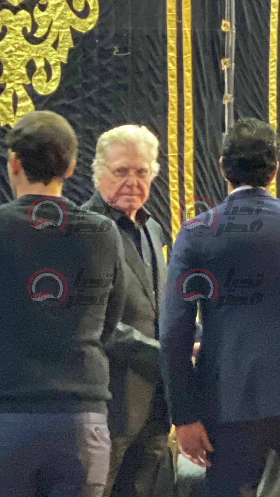 بالصدمة والدموع.. حسين فهمي يستقبل عزاء مصطفى فهمي |صور