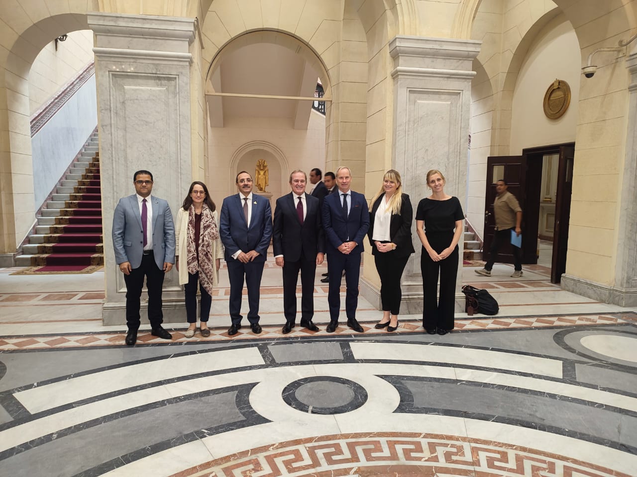 استقبل النائب محمد هيبه رئيس لجنه حقوق الإنسان والتضامن الاجتماعي بمجلس الشيوخ بالمبعوث الخاص بحقوق الإنسان في الاتحاد الاوربي والوفد المرافق له في قاعة كبار الزوار لمجلس الشيوخ.