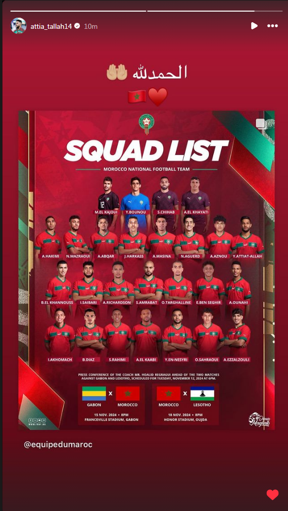 حرص المغربي يحيي عطية الله لاعب الفريق الأول لكرة القدم بالنادي الأهلي، على الاحتفال بتواجده فى قائمة منتخب المغرب، بتصفيات كأس الأمم الإفريقية.