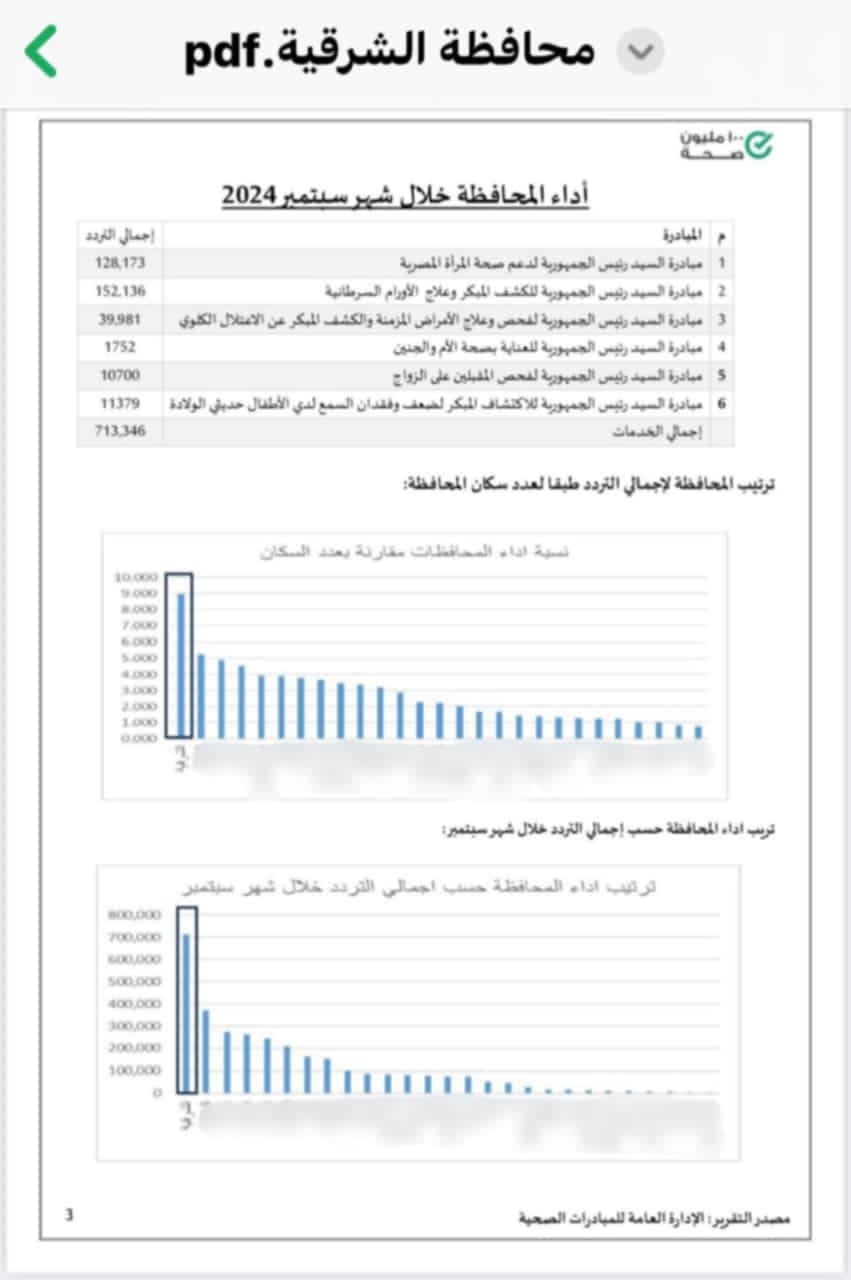 ويأتي ذلك تنفيذاً لتوجيهات معالي الأستاذ الدكتور خالد عبدالغفار نائب رئيس مجلس الوزراء ووزير الصحة والسكان، ودعم معالي المهندس حازم الأشموني محافظ الشرقية، وتعليمات السيد الدكتور هاني مصطفى جميعة وكيل وزارة الصحة بالشرقية، وبعد عرض وزارة الصحة والسكان التقرير التفصيلي عن خدمات المبادرات الرئاسية الصحية المقدمة للمواطنين في جميع محافظات الجمهورية، والتي تأتي في إطار مبادرة «١٠٠ يوم صحة» ومبادرة «بداية جديدة لبناء الإنسان».