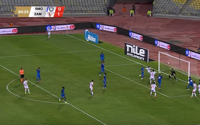 وانتظر حكم المباراة تقنية الفيديو للتأكد من الهدف وقرر احتساب الهدف ويتقدم الزمالك بهدفين مقابل لا شيء.