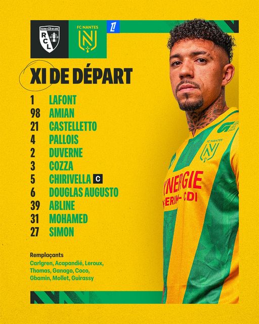 تشكيل نانت الرسمي ضد لانس في الدوري الفرنسي