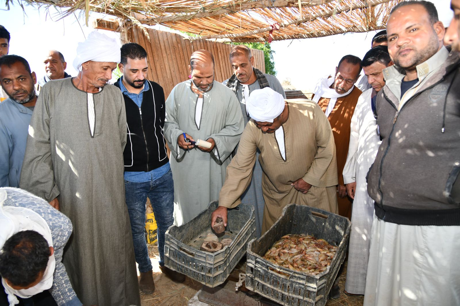 شهد الدكتور أحمد الأنصاري محافظ الفيوم، مزاداً لبيع السمك والجمبري بإحدى الحلقات على ساحل بحيرة قارون، بعد توقف هذه المزادات لمدة 9 سنوات، لعدم وجود إنتاج سمكي بالبحيرة.