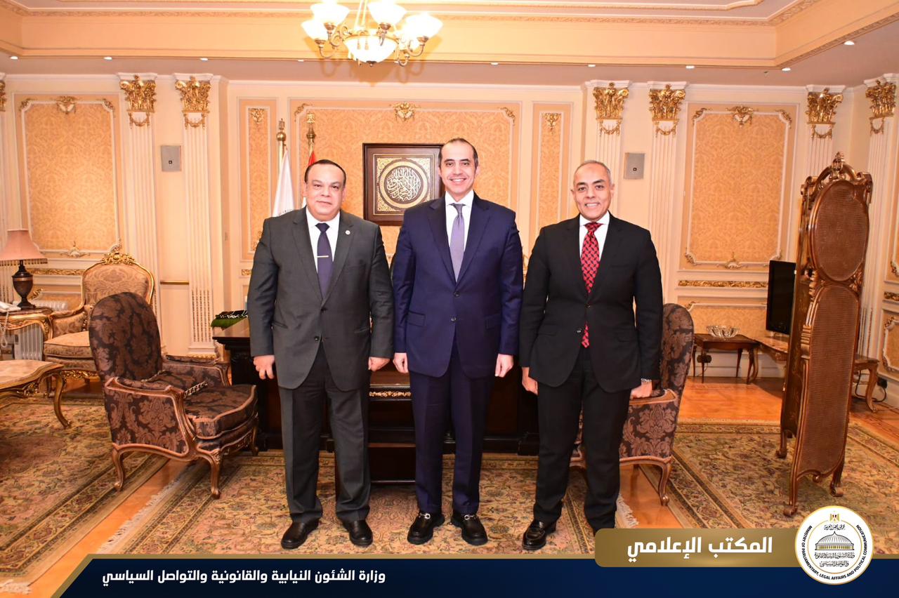 استقبل المستشار محمود فوزي، وزير الشئون النيابية والقانونية والتواصل السياسي، رئيس الهيئة الوطنية للانتخابات، المستشار حازم بدوي، رئيس الهيئة، و المستشار أحمد بنداري، مدير الجهاز التنفيذي للهيئة.