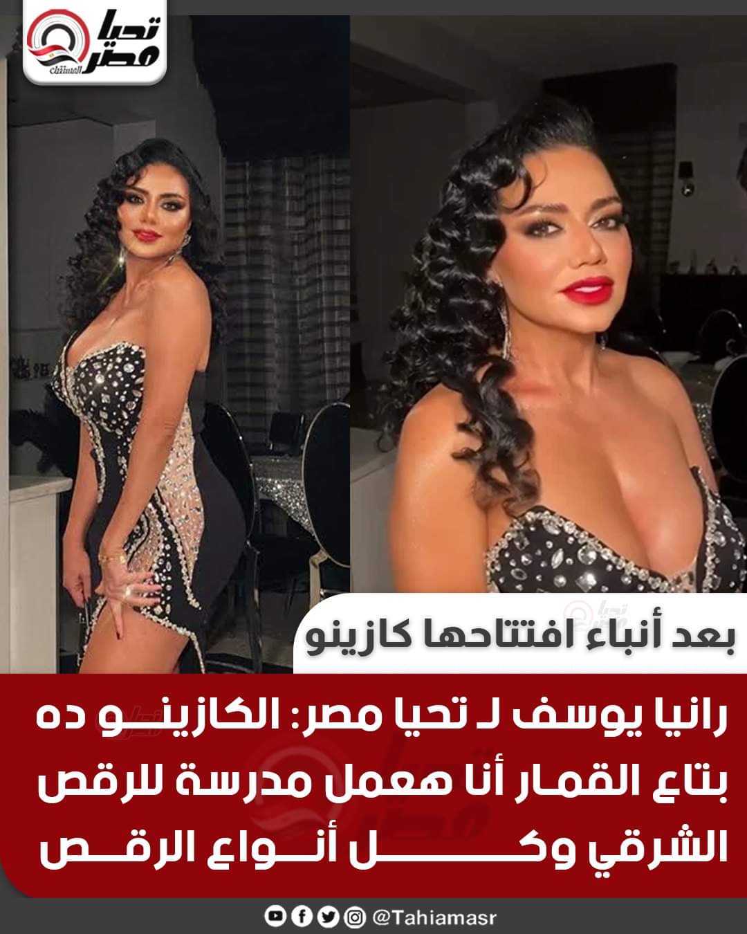 ردت الفنانة رانيا يوسف على الأنباء المتداولة حول افتتاحها كازينو في أبو ظبي، و نفت رانيا يوسف عبر موقع تحيا مصر كافة الأخبار المتداولة حول افتتاحها كازينو وأكدت أنها ستفتتح مدرسة للرقص الشرقي وجميع أنواع الرقص وليس الشرقي فقط، وأعربت عن استيائها من الأنباء المتداولة حول ذلك قائلة: "يعني ايه هفتتح كازينو، الكازينو ده بتاع القمار ومفيش حاجة اسمها كازينو رقص شرقي زي ما الناس بتقول أنا مش هفتح كازينو أنا هفتح مدرسة لتعليم الرقص الشرقي وكل أنواع الرقص".