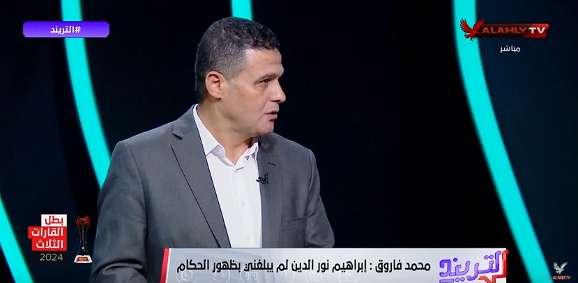 وأشار محمد فاروق، إبراهيم نور الدين قرر ظهور الحكام في التليفزيون دون العودة لي وكنت قد قررت استبعادهم من البطولة والاعتماد على حكام إماراتيين ولكن تراجعت في النهاية للحفاظ على صورة مصر وتفادي أي أزمات.
