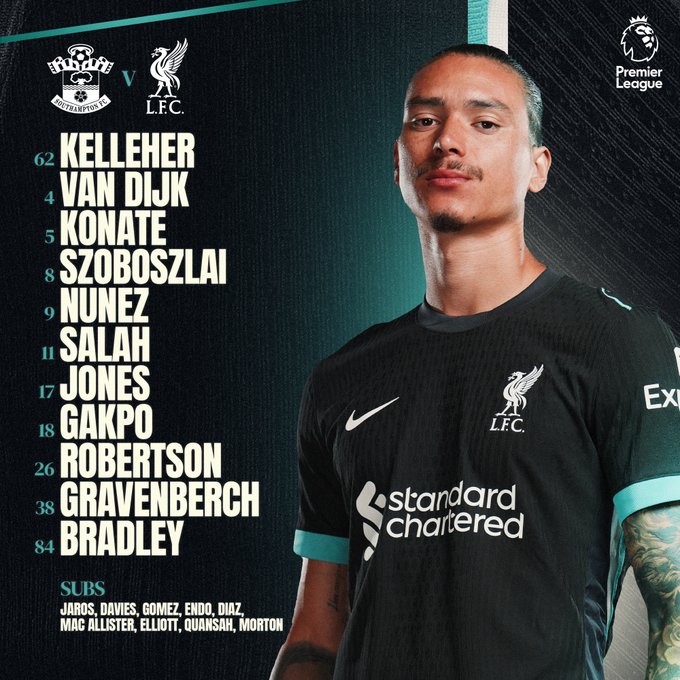 تشكيل ليفربول الرسمي ضد ساوثهامبتون في الدوري الإنجليزي الممتاز