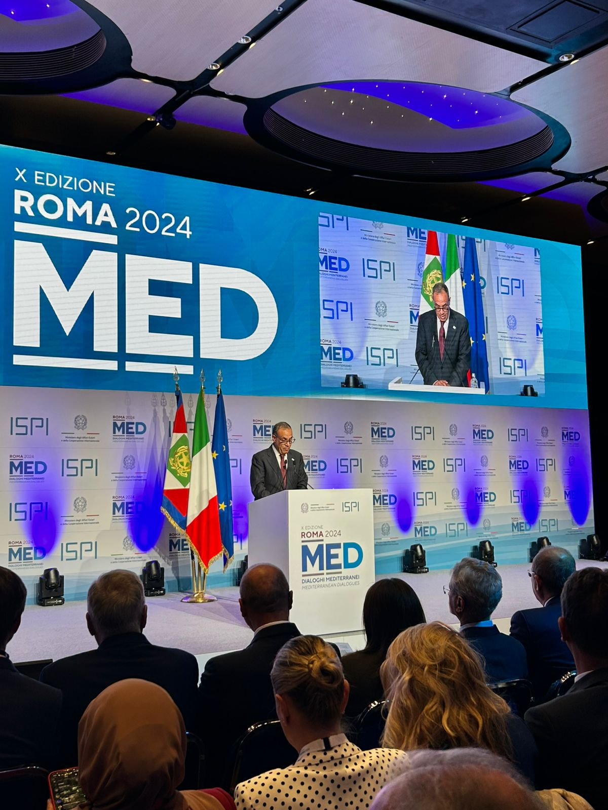 وقال السفير تميم خلاف المتحدث الرسمى باسم وزارة الخارجية أن وزير الخارجية القى كلمة خلال الجلسة الافتتاحية أوضح فيها أن المنتدى يُعقد خلال مرحلة دقيقة تواجه فيه دول المتوسط تحديات أمنية وسياسية جسيمة، لاسيما في ظل ما تشهده منطقة الشرق الأوسط من تهديد للسلم والأمن الإقليمي على اثر العدوان لأكثر من عام على قطاع غزة، وانتهاك للسيادة اللبنانية.