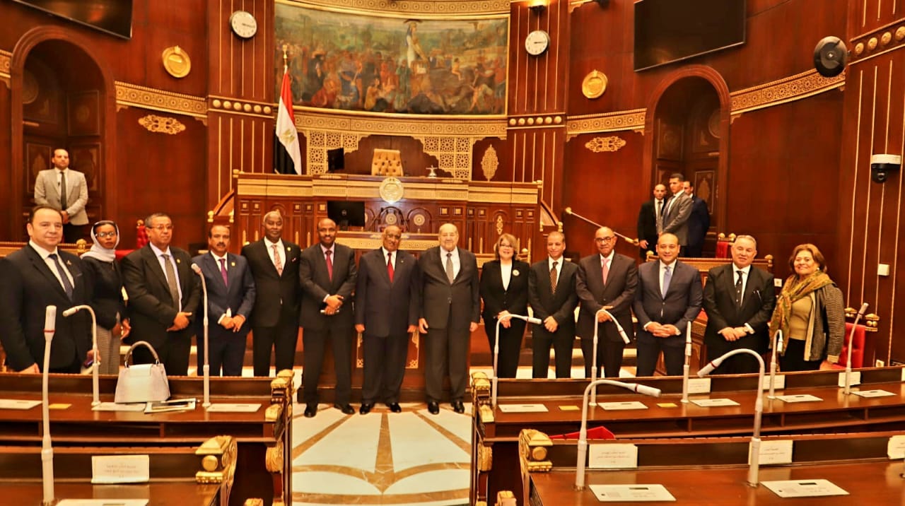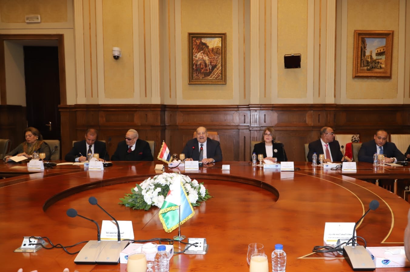 وأعضاء جمعية الصداقة البرلمانية المصرية الجيبوتية برئاسة النائب عادل عبد الفتاح مأمون وسفير جيبوتي بالقاهرة د. أحمد علي بري.