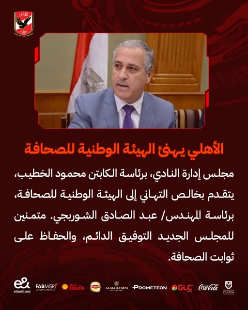 النادي الأهلي يهنئ الهيئة الوطنية للصحافة برئاسة المهندس عبد الصادق الشوربجي