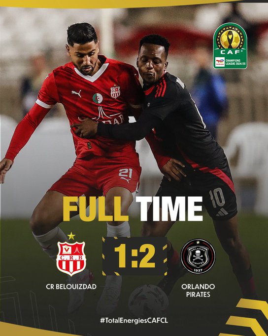 انتهت مباراة أولاندو بيراتس وشباب بلوزداد في دوري أبطال أفريقيا في الجولة الأولى لحساب المجموعة الثالث وهي مجموعة النادي الأهلي بفوز أورلاندو بهدفين مقابل هدف واحد.