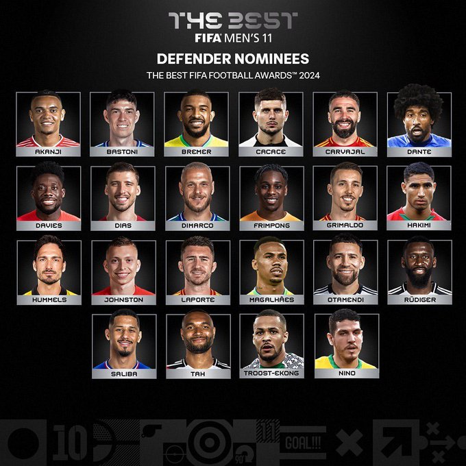 قائمة اللاعبين المرشحين لجائزة أفضل مدافع في العالم 2024