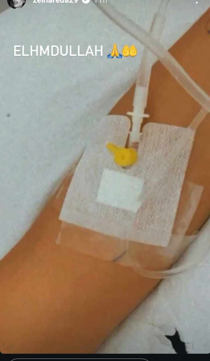 ونشرت زينة صورة لها عبر خاصية ستوري بموقع تبادل الصور والفيديوهات انستجرام في منشور رصده موقع تحيا مصر ظهرت بها يديها وعليها كانولا موصلة بالمحاليل، واكتفت بالتعليق عليها فقط "الحمدلله"، دون الكشف عن اي تفاصيل أخرى خاصة بأزمتها المرضية أو الحالة الصحية التي تمر بها الآن.