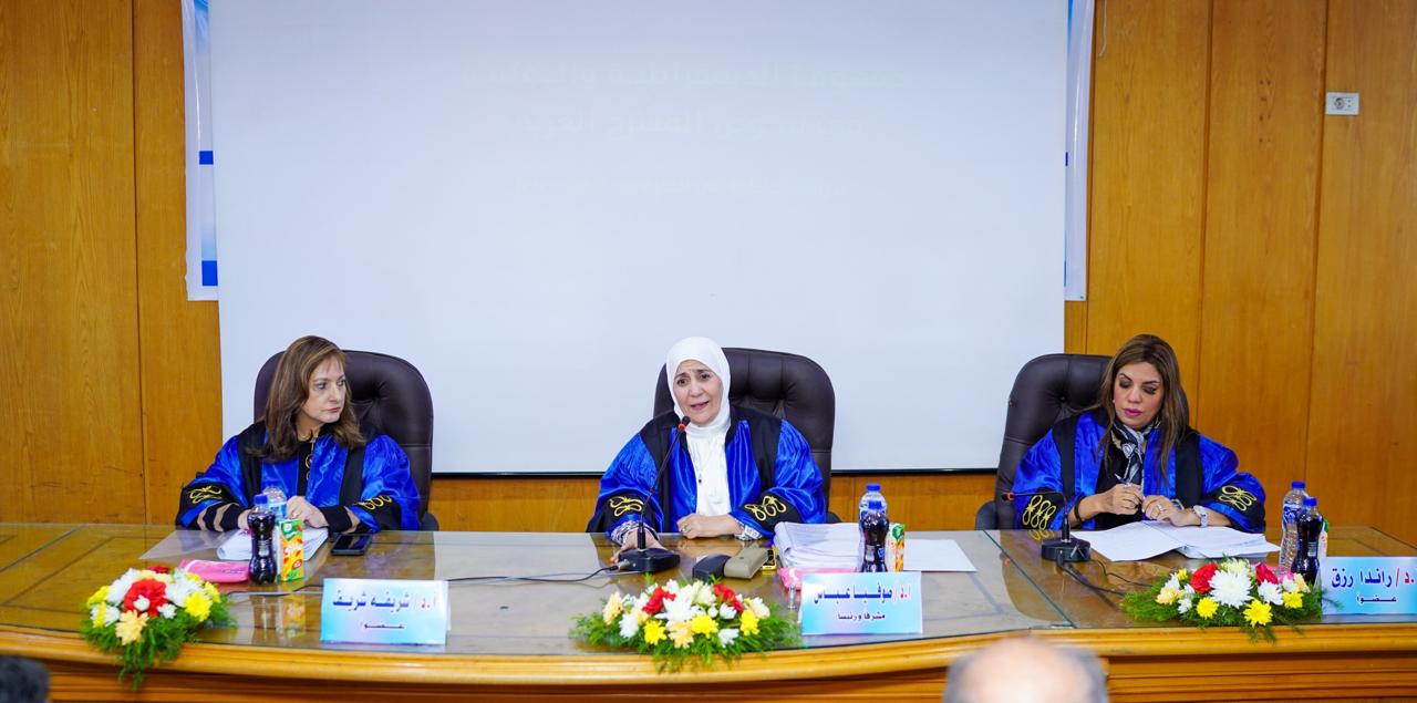 ناقش الرسالة: أ.د. صوفيا عباس، أستاذ النقد الأدبي بكلية الآداب جامعة الإسكندرية، والرئيس الأسبق لقسم الدراسات المسرحية. بالإضافة إلى أ.د. شريفة شريف، أستاذ الإدارة العامة بكلية الاقتصاد والعلوم السياسية، ورئيس المعهد القومي للحوكمة والتنمية المستدامة. وكذلك أ.د. راندا رزق، أستاذ النقد والدراما ورئيس قسم الإعلام التربوي بكلية التربية النوعية جامعة القاهرة.