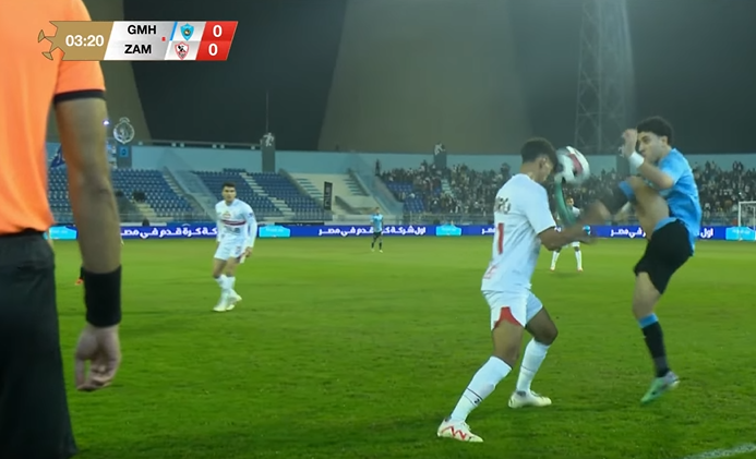 وعاد حكم المباراة لتقنية الفيديو وقرر طرد يحيى زكريا بعد التدخل القوي على أحمد إيشو لاعب نادي الزمالك.