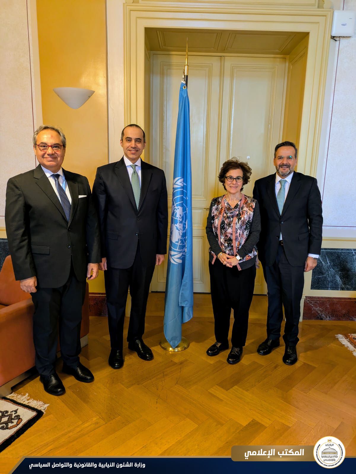 على هامش زيارته إلى جنيف، التقى المستشار محمود فوزي وزير الشئون النيابية والقانونية والتواصل السياسي بندى الناشف نائب المفوض السامي لحقوق الإنسان.