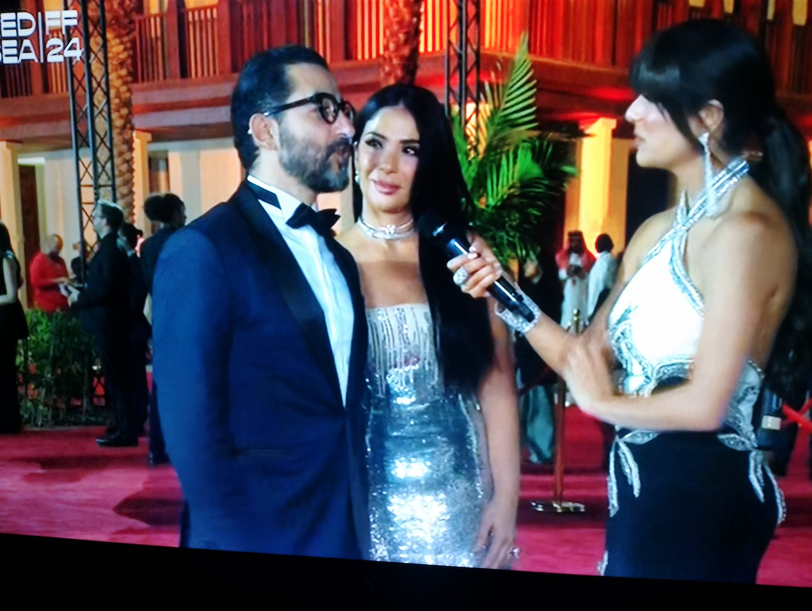 أحمد حلمي يهنئ منى زكي بتكريمها في مهرجان البحر الأحمر السينمائي