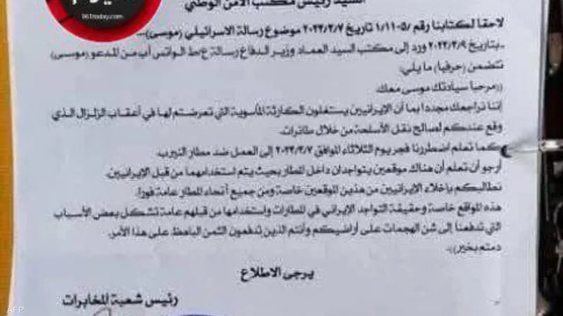 وفقًا للتقرير، وصلت الرسالة إلى رئيس الأمن القومي السوري عبر تطبيق واتساب، وحملت تحذيرات واضحة من أن إيران تستغل المساعدات الإنسانية التي وصلت سوريا بعد زلزال فبراير 2023 لتهريب الأسلحة إلى المنطقة، مما دفع إسرائيل إلى شن ضربات جوية استهدفت مطار النيرب العسكري في حلب.