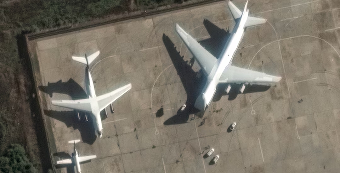 وذكرت شركة ماكسار إن "طائرتين للنقل الثقيل من طراز أيه.إن-124 تتواجدان في المطار، ومقدمتهما مفتوحة وفي وضع استعداد لتحميل العتاد".