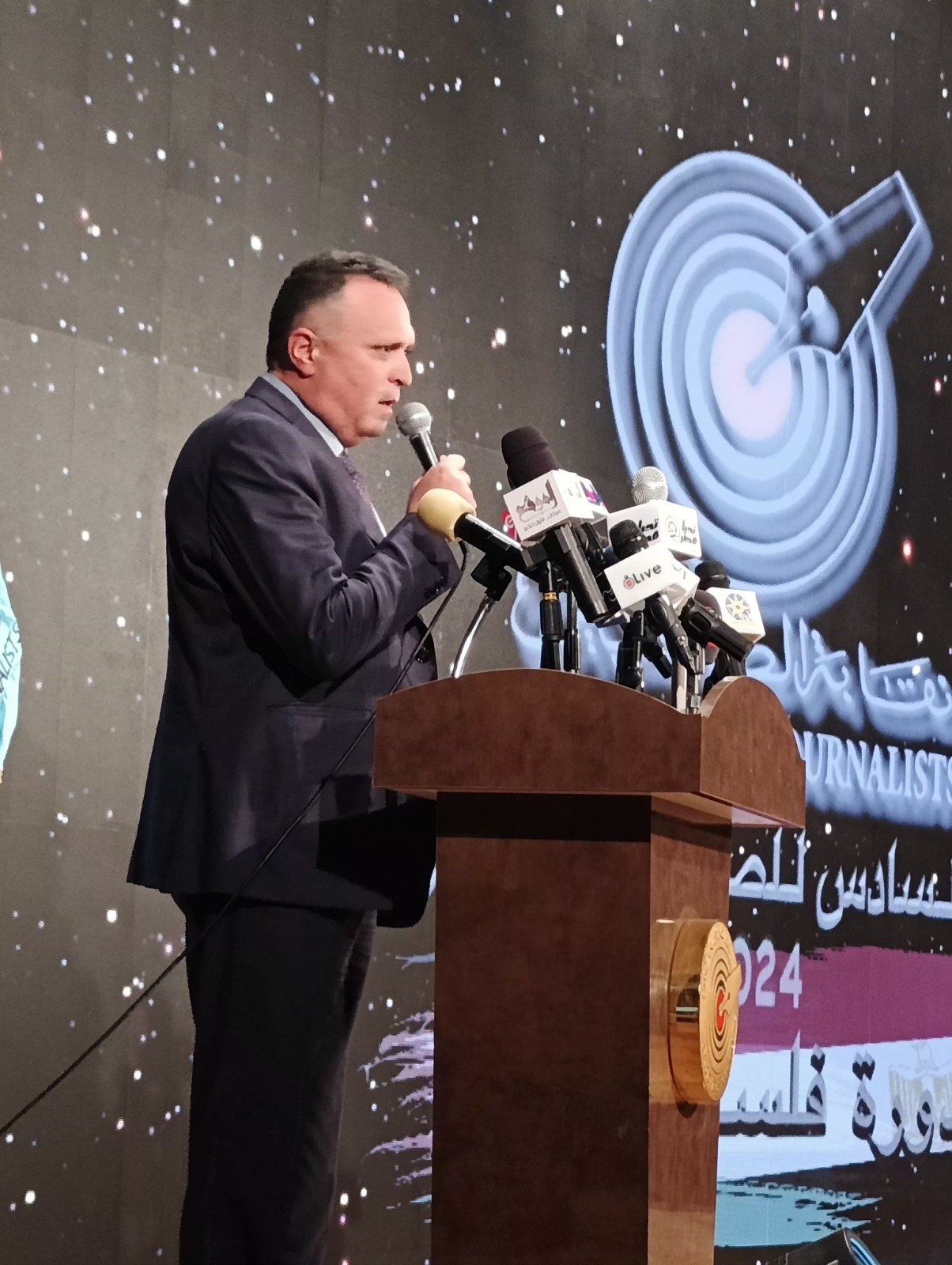 بالمؤتمر العام السادس.. نقيب الصحفيين الفلسطينيين: سيبقى موقف النقابة المصرية لنصرة غزة دين في أعناقنا