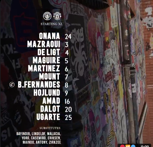 تشكيل مانشستر يونايتد الرسمي ضد مانشستر سيتي في الدوري الإنجليزي الممتاز