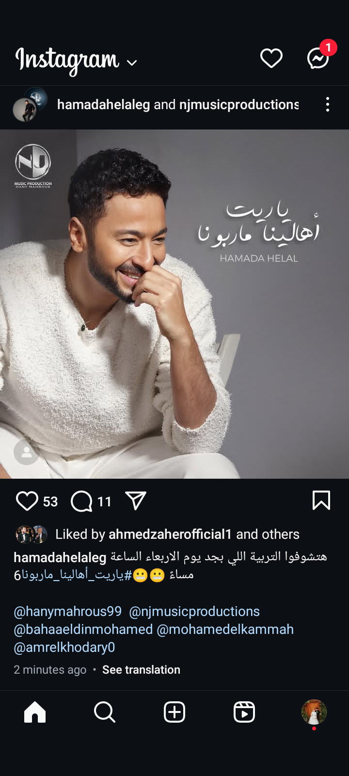 كشف المطرب حمادة هلال بطريقة طريفة ان استعداده لطرح أغنية جديدة بعنوان ياريت أهالينا ما ربونا، وذلك من خلال منشور رصده موقع تحيا مصر عبر حسابه الرسمي بموقع تبادل الصور والفيديوهات انستجرام.