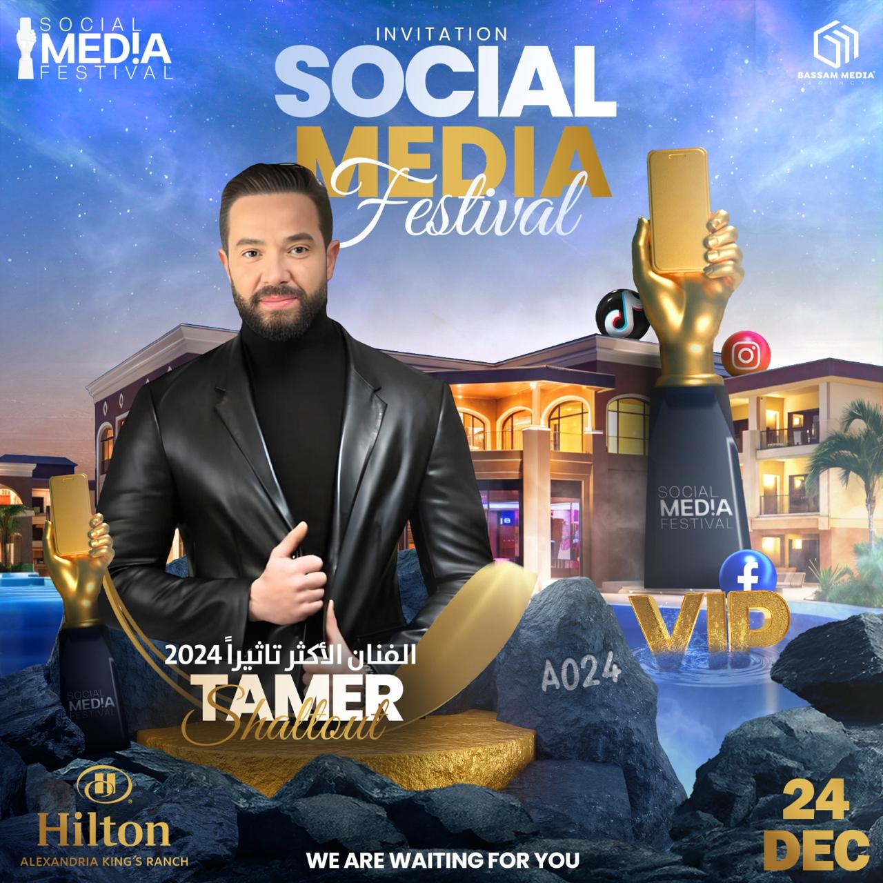 قررت إدارة مهرجان Social Media Festival برئاسة الأستاذ بسام عبدالنبي الفنان والإعلامي تامر شلتوت وذلك يوم الثلاثاء الموافق 24 من شهر ديسمبر الجاري بفندق هيلتون إسكندرية.