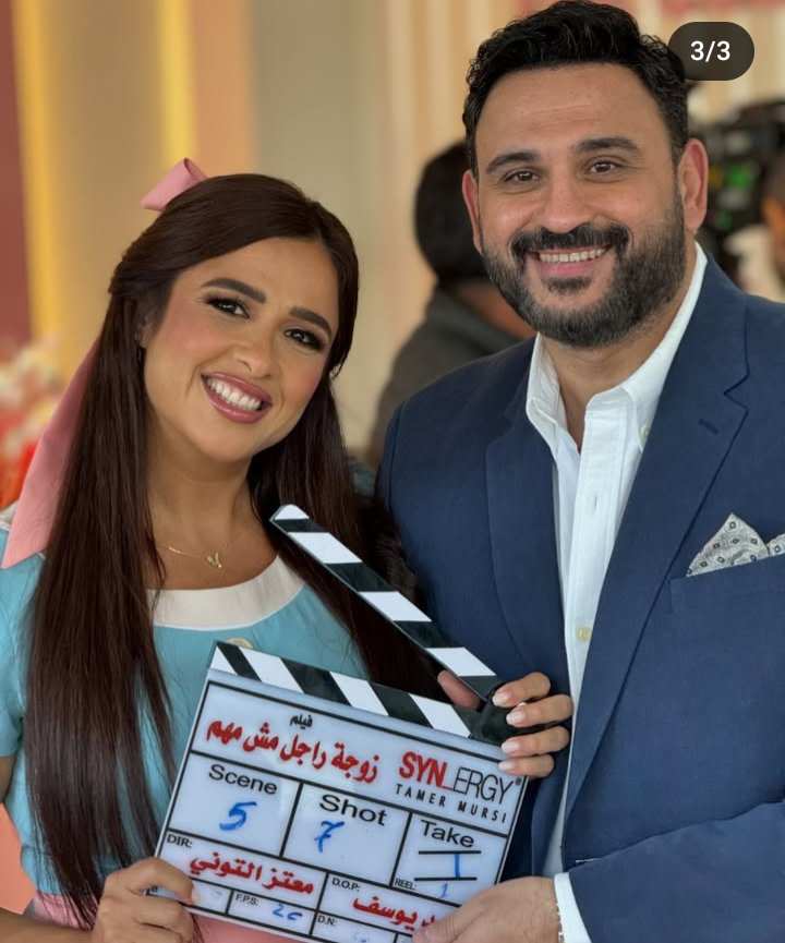 صور جديدة من كواليس تصوير فيلم زوجة راجل مش مهم بطولة ياسمين عبد العزيز وأكرم حسني