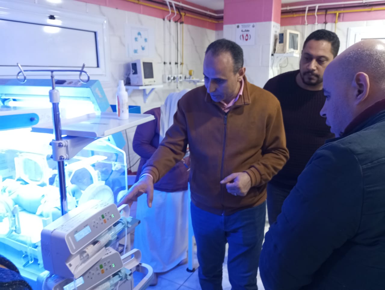 كما تفقد «جميعة» قسم الحضانات، والذي يضم ٢٥ حضانة، وبه ١٢ حالة وتم التأكد من فحص الأطفال المبتسرين ضمن المبادرة الرئاسية للكشف المبكر عن الأمراض الوراثية، متفقداً قسم الأشعة، وتم التأكد من كفاءة عمل الأجهزة الطبية، خاصة جهاز الأشعة المقطعية، وقام بمناظرة سجلات التردد عليها، مؤكداً على أهمية الصيانة الدورية لكافة الأجهزة الطبية بالمستشفى.