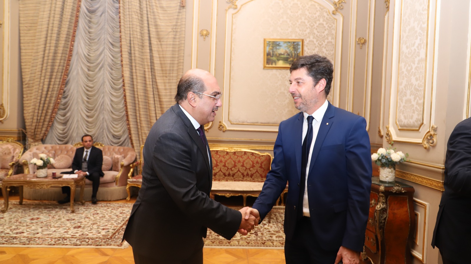 وأكد وهبة ، فى بيان له اليوم، أن الوفدين اتفقوا على إصدار البيان المشترك للمطالبة بوقف الحرب على الشعب الفلسطيني. وكان النائب محمد جاد، وكيل لجنة الدفاع والأمن القومي بمجلس الشيوخ، استقبل اليوم الأربعاء ، وفدًا رفيع المستوى من مجلس الشيوخ الفرنسي اليوم بمجلس الشيوخ، مشيدا بالعلاقات المتميزة بين جمهورية مصر العربية والجمهورية الفرنسية، مؤكدًا أهمية تعزيز التعاون البرلماني بين البلدين لدعم الروابط بين الشعبين المصري والفرنسي كما نقل للوفد تحيات المستشار عبدالوهاب عبدالرازق، رئيس مجلس الشيوخ، وتمنى لهم إقامة طيبة في مصر.