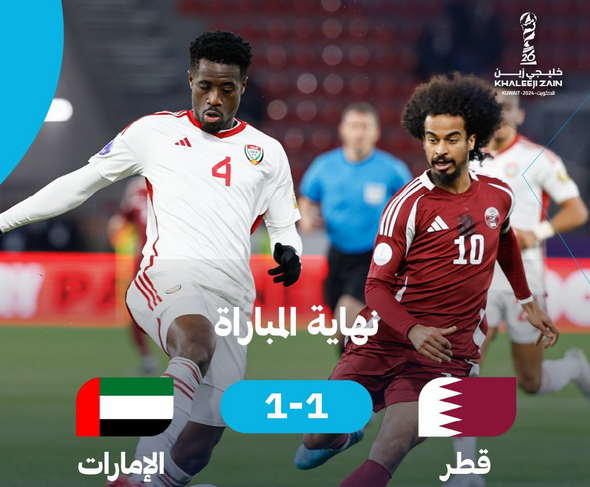 منتخب الإمارات يتعادل أمام قطر (1/1) في كأس الخليج العربي