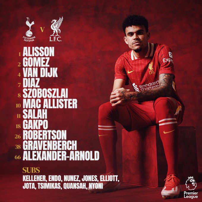 تشكيل ليفربول الرسمي ضد توتنهام هوتسبير في الدوري الإنجليزي الممتاز