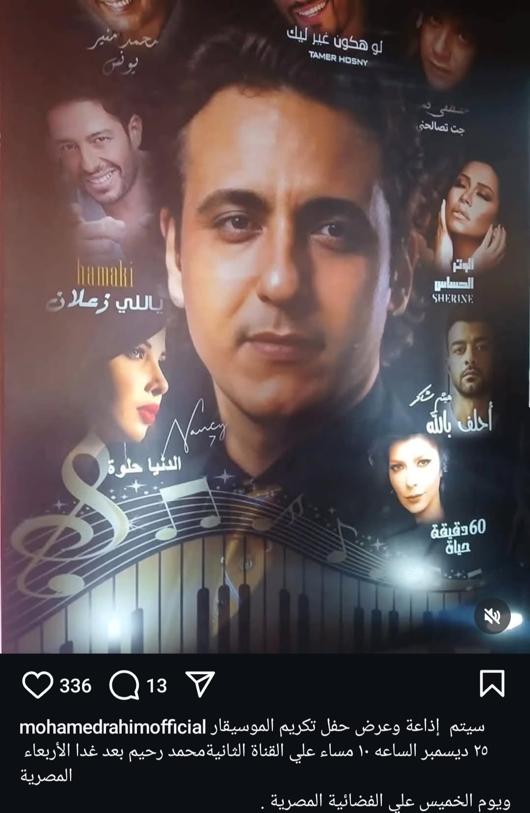 موعد وقنوات عرض حفل تكريم محمد رحيم في التليفزيون