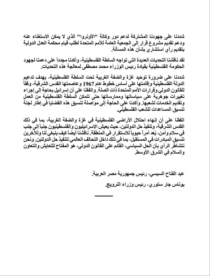 بيان مصري نرويجى مشترك فى إطار متابعة نتائج زيارة الرئيس السيسي إلى أوسلو