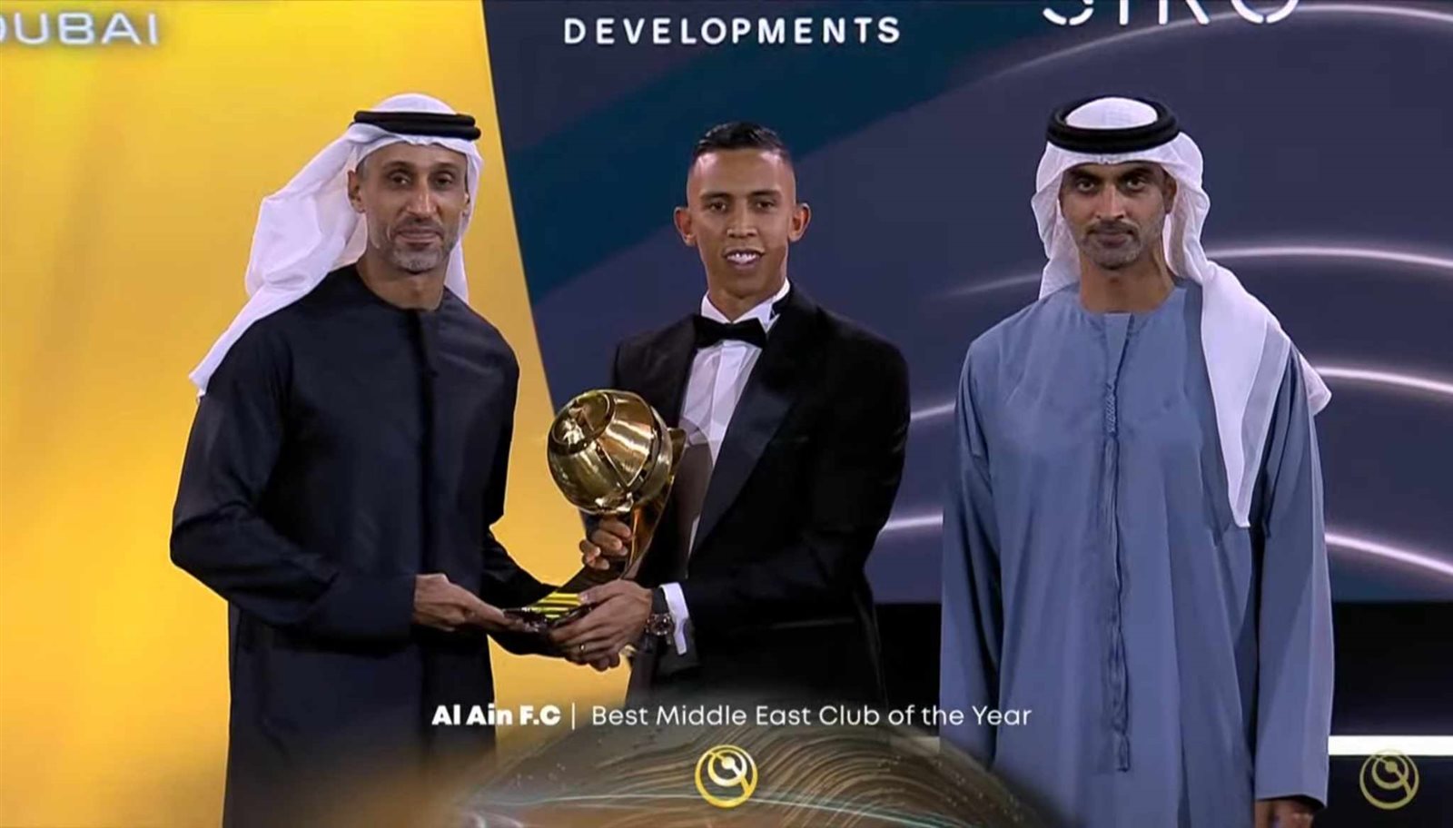 وتسلم اللاعب المغربي سفيان رحيمي لاعب نادي العين الإماراتي جائزة أفضل نادي في الشرق الأوسط لصالح الفريق الإماراتي.