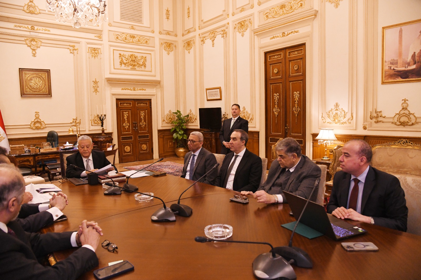 عقد اليوم المستشار الدكتور حنفي جبالي رئيس مجلس النواب اجتماعاً مع السيد الدكتور خالد عبدالغفار نائب رئيس مجلس الوزراء للتنمية البشرية وزير الصحة والسكان، بمقر المجلس بحضور السيد المستشار وزير الشئون النيابية والقانونية والتواصل السياسي، والسيد المستشار أحمد سعدالدين وكيل أول المجلس، والسيد المستشار أحمد مناع الأمين العام للمجلس، والنائب الدكتور عبدالهادي القصبي رئيس الهيئة البرلمانية لحزب مستقبل وطن، والدكتور أشرف حاتم رئيس لجنة الشئون الصحية بمجلس النواب، والمستشار محمد عبدالعليم كفافي المستشار القانوني لرئيس المجلس، لبحث ودراسة مشروع القانون المقدم من الحكومة بإصدار قانون تنظيم المسئولية الطبية وحماية المريض، والذي وافق عليه مؤخراً مجلس الشيوخ.