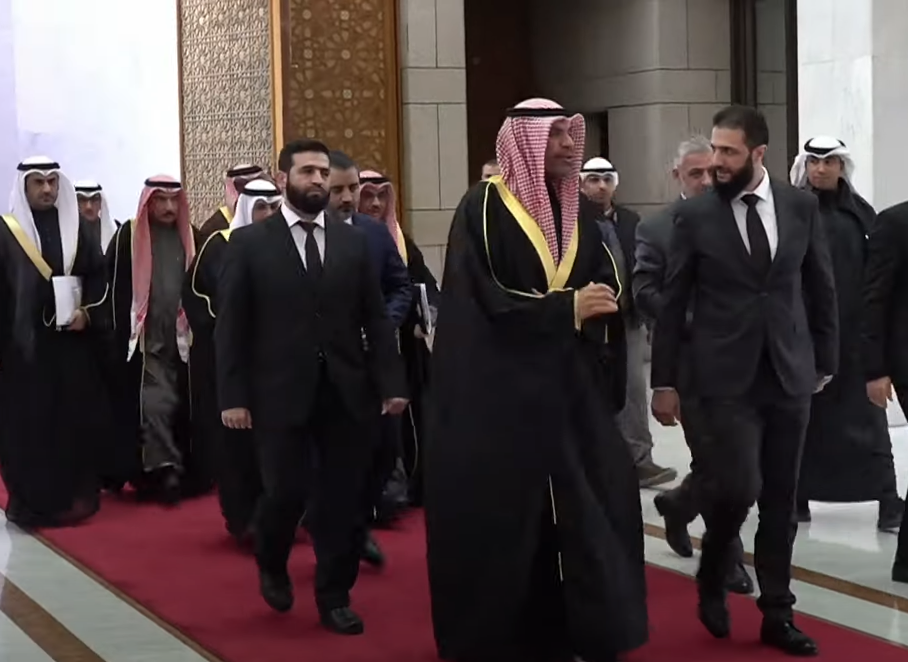 وبثت قناة الجزيرة القطرية لقطات للدبلوماسيين الكويتيين وهم يجتمعون بالزعيم الفعلي لسوريا أحمد الشرع.