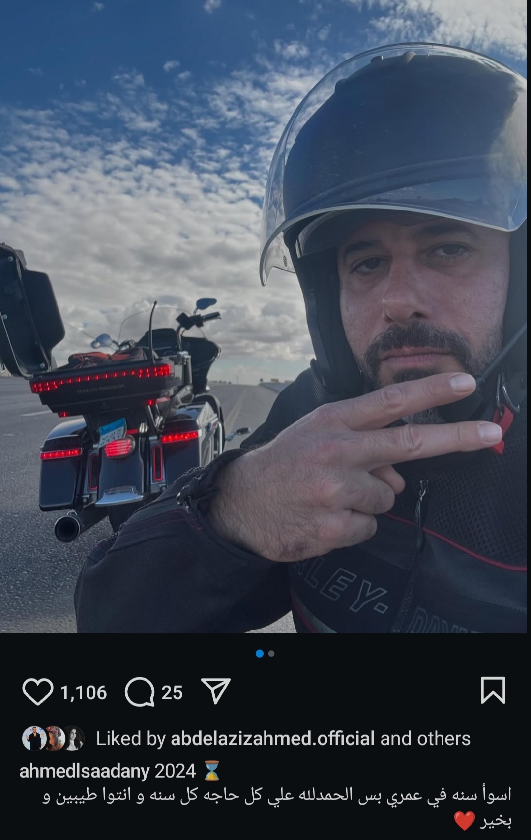 ودع الفنان أحمد السعدني عام 2024 بكلمات حزينة توصف غضبه من أحداث هذا العام والحزن الذي يسيطر عليه ويشعر به، حيث كتب أحمد السعدني عبر حسابه الرسمي على موقع تبادل الصور والفيديوهات انستجرام والذي يرصده موقع تحيا مصر: "أسوأ سنة في عمري بس الحمدلله على كل حال، وكل سنة وانتم طيبين وبخير"، وانهالت التعليقات على منشور أحمد السعدني من بين نجوم الفن الذي وجهوا له كلمات الدعم وحاولوا مساندته فيما يشعر به بالإضافة إلى متابعيه ومحبينه.