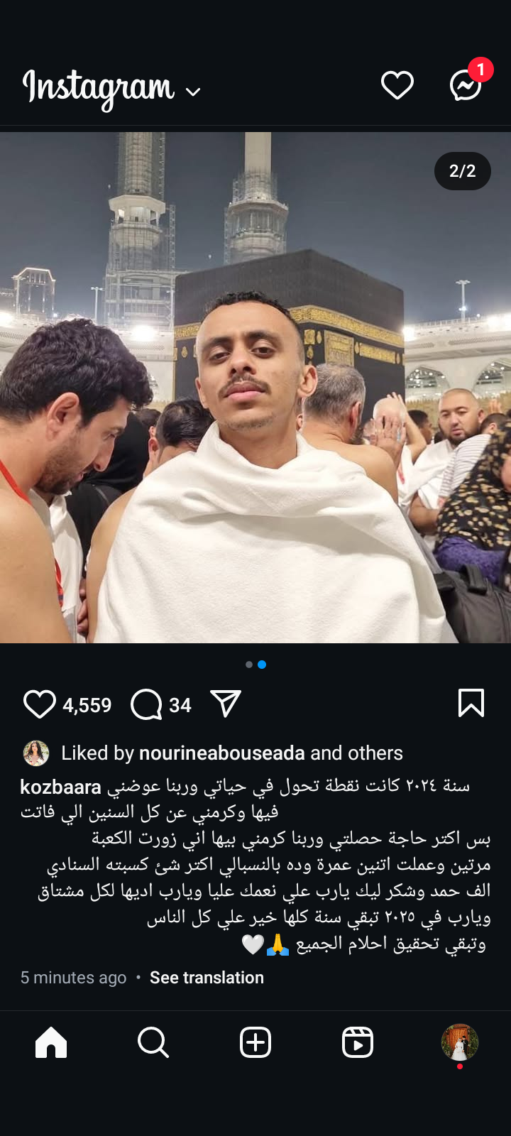ونشر كزبرة صور له أثناء أداءه مناسك العمرة وذلك عبر حسابه الرسمي بموقع تبادل الصور والفيديوهات انستجرام، وعلق عليها في منشور رصده موقع تحيا مصر: ٢٠٢٤ كانت نقطة تحول في حياتي وربنا عوضني فيها وكرمني عن كل السنين اللي فاتت، بس اكتر حاجة حصلتي وربنا كرمني بيها اني زورت الكعبة مرتين وعملت اتنين عمرة وده بالنسبالي اكتر شئ كسبته السنادي.
