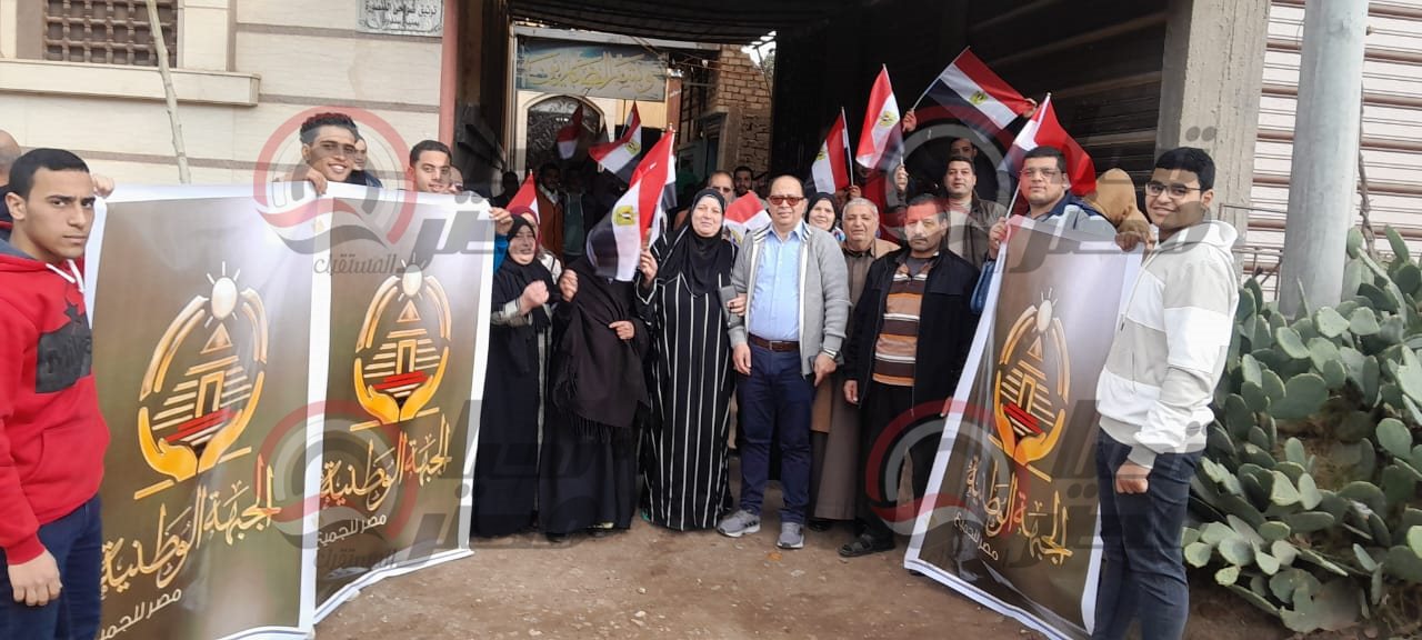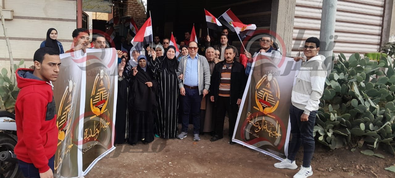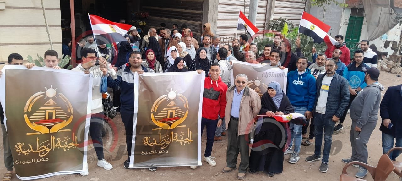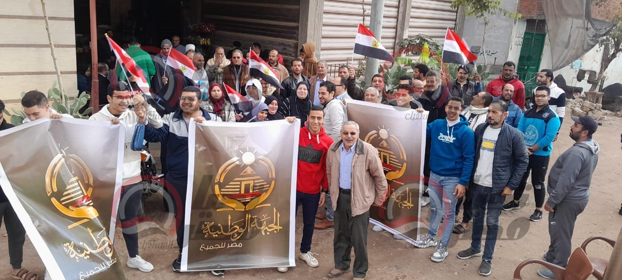 وحمل المواطنون اعلام مصر وشعار حزب الجبهة الوطنية الذي يؤسس في الوقت الراهن.