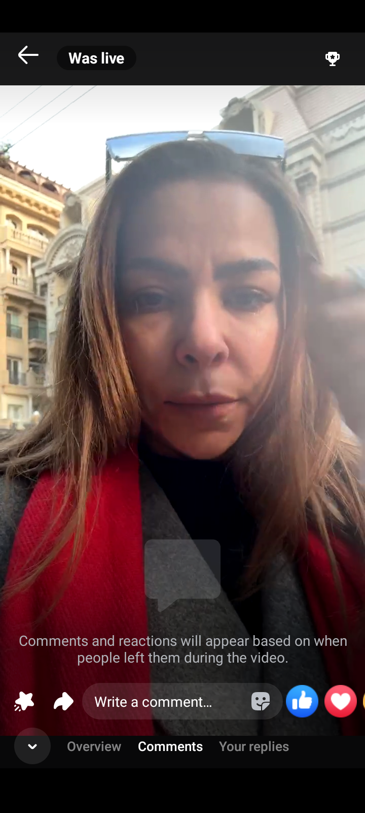 وقالت ألفت عمر في أول بث مباشر قامت به ورصده موقع تحيا مصر: أنا أول مرة أطلع لايف واتكلم في حاجة شخصية، بتمنى من كل اللي يشوف الفيديو دا يعمله شير، لأن بابا حالته الصحية حرجة وهو على جهاز التنفس الصناعي لكن فيه أمل، عايزاكوا تدعوله وتشيروا الفيديو دا ويوصل لأكبر عدد من الناس، وبالنسبة الناس اللي تعرفني أي قيمة أو مبدأ موجودين عندي بابا اللي علمهالي.