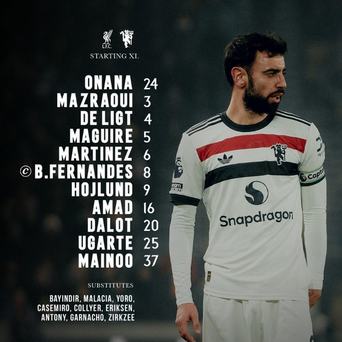 تشكيل مانشستر يونايتد الرسمي ضد ليفربول في الدوري الإنجليزي الممتاز
