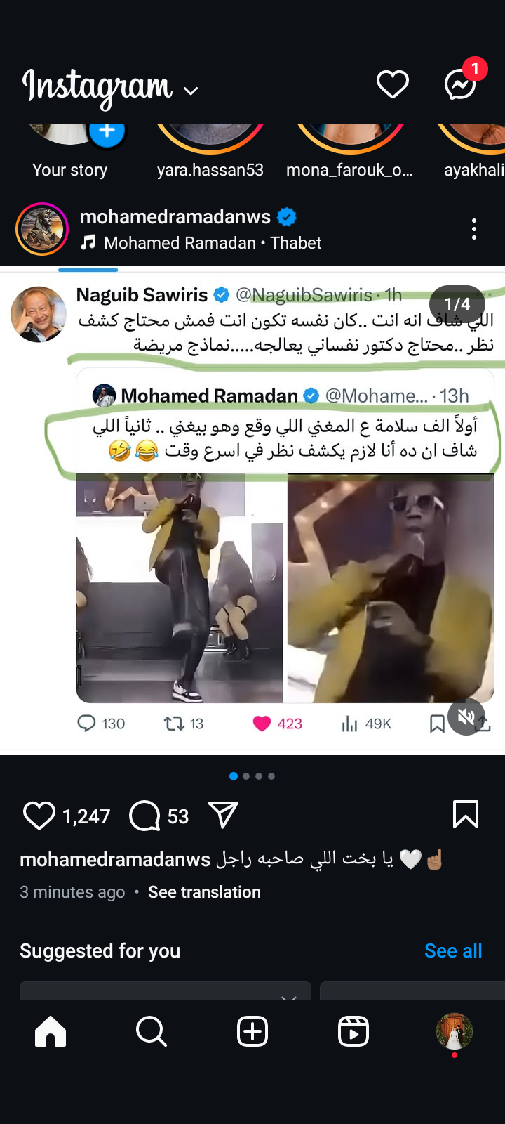 خرج رجل الأعمال الشهير نجيب ساويرس ليدافع عن الفنان محمد رمضان بعدما تداول عدد كبير من رواد مواقع التواصل الاجتماعي فيديو لسقوط مغني مع على المسرح أثناء غناء على أنه الفنان محمد رمضان، وأشار ساويرس إلى أن هؤلاء الأشخاص مرضى نفسيين.