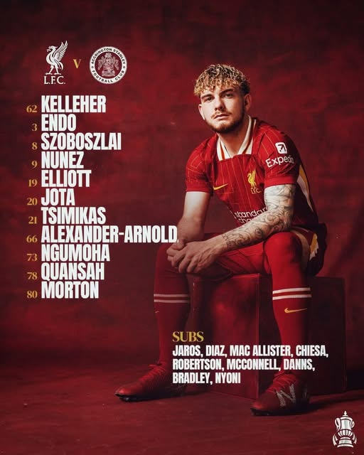 تشكيل ليفربول الرسمي ضد أكرينجتون ستانلي في كأس الاتحاد الإنجليزي