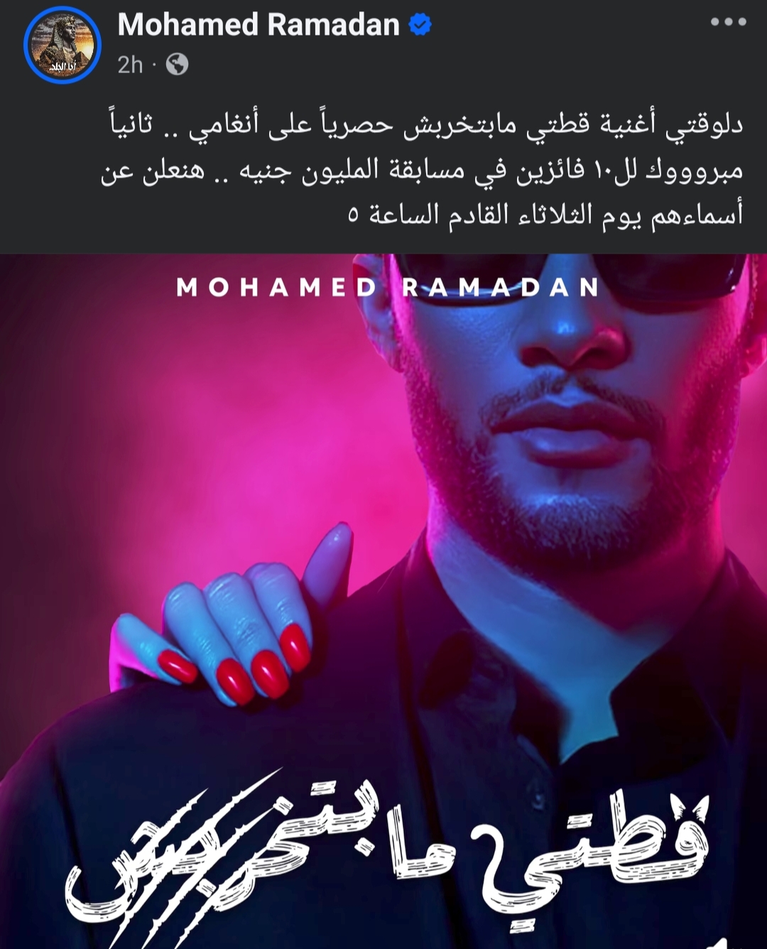 محمد رمضان يعلن أسماء الفائزين في مسابقة المليون في هذا الموعد.. واسم أغنيته الجديدة