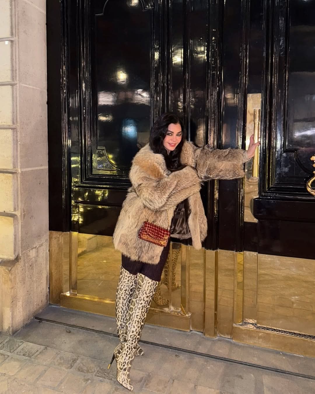 جلد الثعبان .. هيفاء وهبي تبرز أناقتها بإطلالة شتوية لافتة