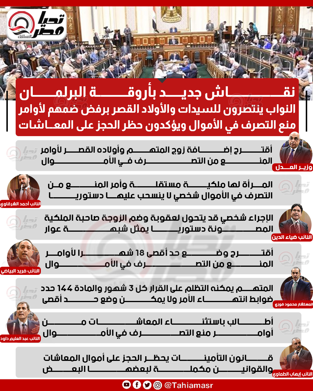 نقاش جديد بأروقة البرلمان.. النواب ينتصرون للسيدات والأولاد القصر برفض ضمهم لأوامر منع التصرف في الأموال ويؤكدون حظر الحجز على المعاشات