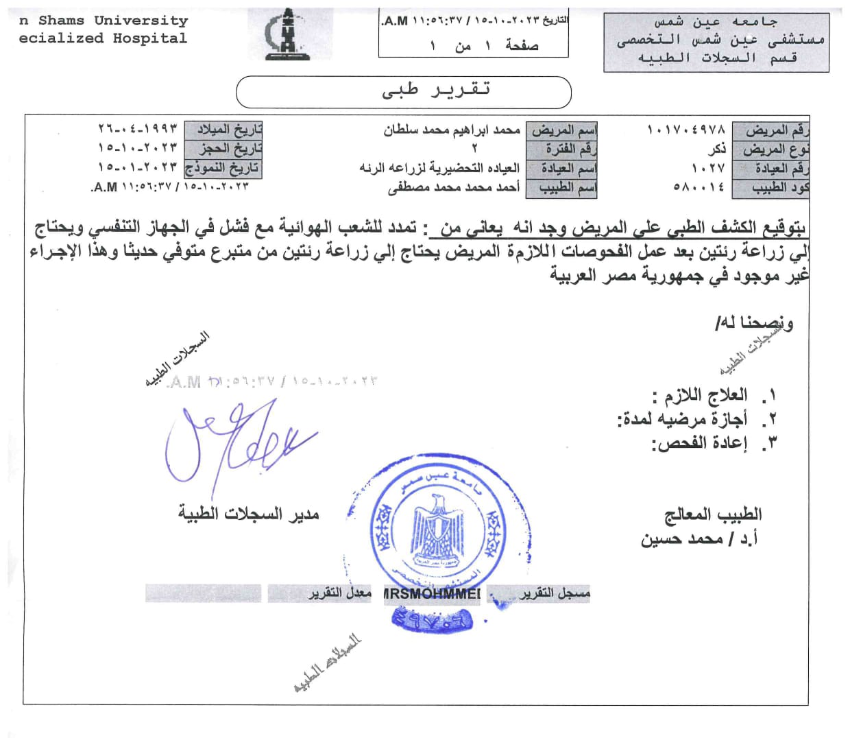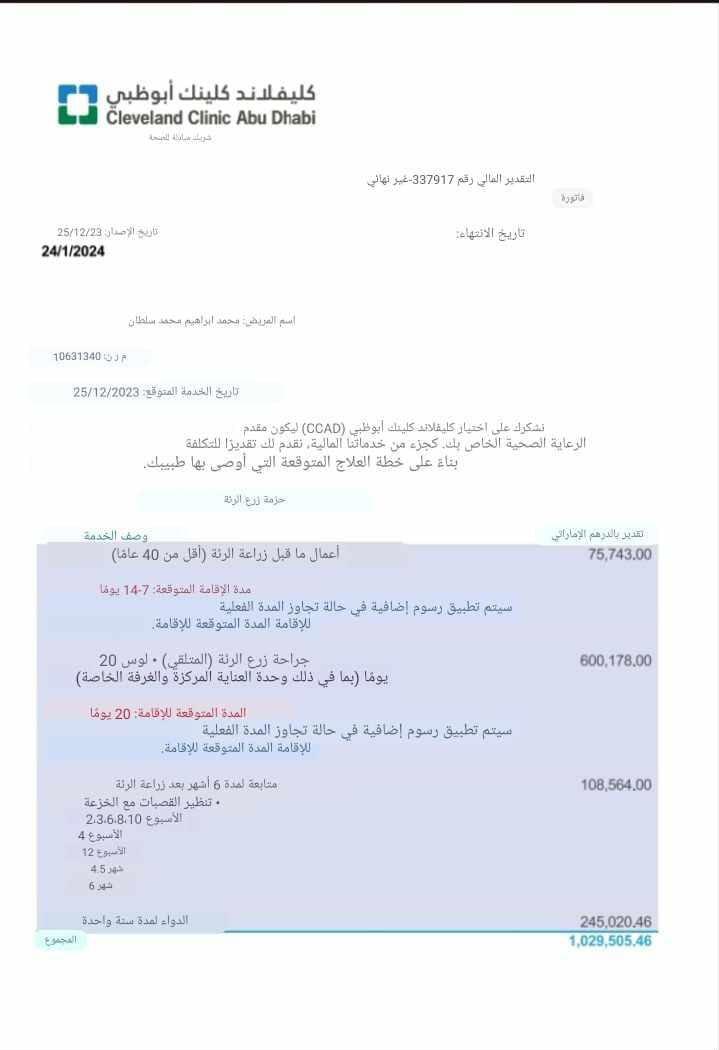 وتابع الشاب «محمد» أنه قام بارسال حالته، وعمل كشف عبر موقع إلكتروني لمستشفى في أبوظبي بالإمارات، وتبين أنه يحتاج إلى عملية زراعة رئتين في أبو ظبي تكلفتها تصل إلى مليون 29 ألف درهم إماراتي، ما يعادل 14 مليون جنيه مصري، مشيراً إلى أنه أصبح يعيش على الأجهزة التنفسية، ولا يتمكن من الابتعاد عنها ويعيش على مساعدات أهل الخير هو وزوجته ووالدته بسبب عدم قدرته على الحركة والعمل.