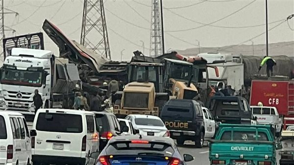 بداية بلاغ حادث تصادم 20 سيارة أعلى الدائري الأوسطي بحلوان